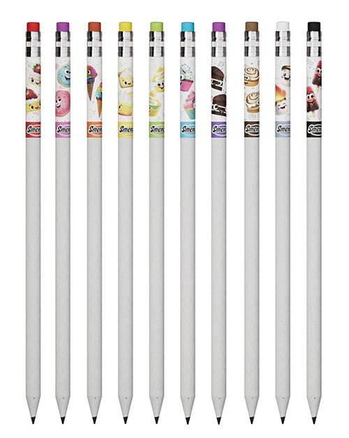 Once they're dry, we attach the erasers and apply the stickers around them that identify which scent was infused into each Dessert Smencil. Lastly, we put each Dessert Smencil into its own recyclable plastic freshness tube that comes with a collectible character top cap!