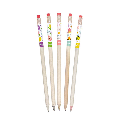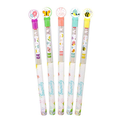 Spring Smencils are made by rolling sheets of newspaper tightly around the #2 graphite writing cores until pencils of typical thickness are formed. Then they’re hardened – allowing them to be sharpened just like wood pencils. Next, we soak them with our gourmet liquid scents (made by an award winning fragrance company). Once they’re dry, we attach the erasers and apply the stickers around them that identify which scent was infused into each Smencil. Lastly, we put each Spring Smencil into its own corn-based biodegradable Freshness Tube.