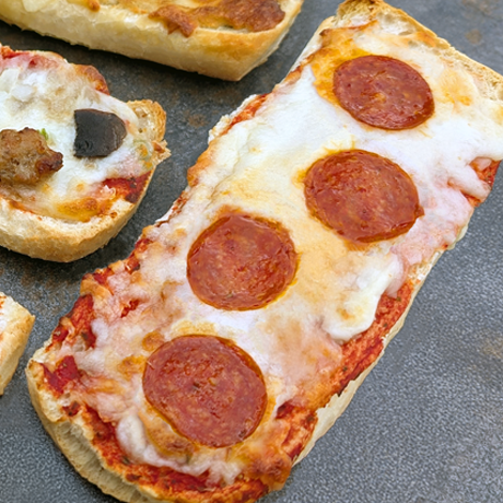 Crispy French bread topped with zesty pizza sauce, melted mozzarella cheese, and classic peperoni slices. 8 inches of delicious pizza perfection ready in minutes.