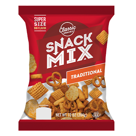 A bold and irresistible medley of crispy rye chips, crunchy bagel chips, savory pretzels, golden corn squares, and zesty mini breadsticks, bursting with a mouthwatering blend of seasonings in every bite! 10 ounce bag.